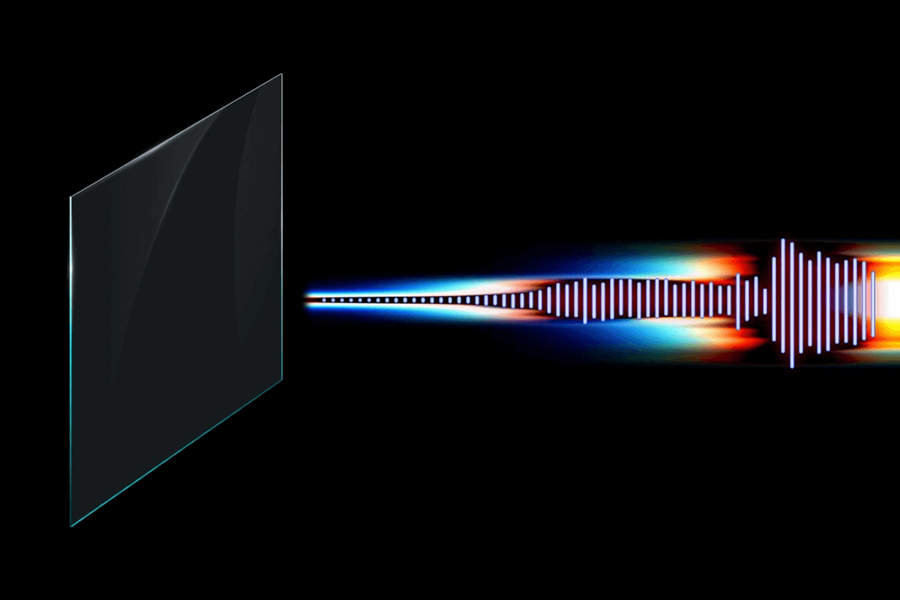 Focusound Screen®是清聽聲學自主研發的第三代定向發聲技術,為全球首創,通過全透明材料結合多種發聲原理,實現可聽聲發聲方向和角度的動態調整。