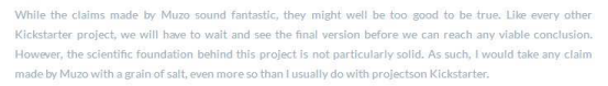 有外國網(wǎng)友評價:Muzo這個產(chǎn)品申明太好了,以至于好的不太真實。同時他還覺得這個項目背后的科學(xué)基礎(chǔ)并不堅實。
